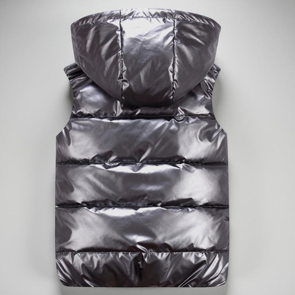 Men's Quilted Vest Hood Zipper Pockets