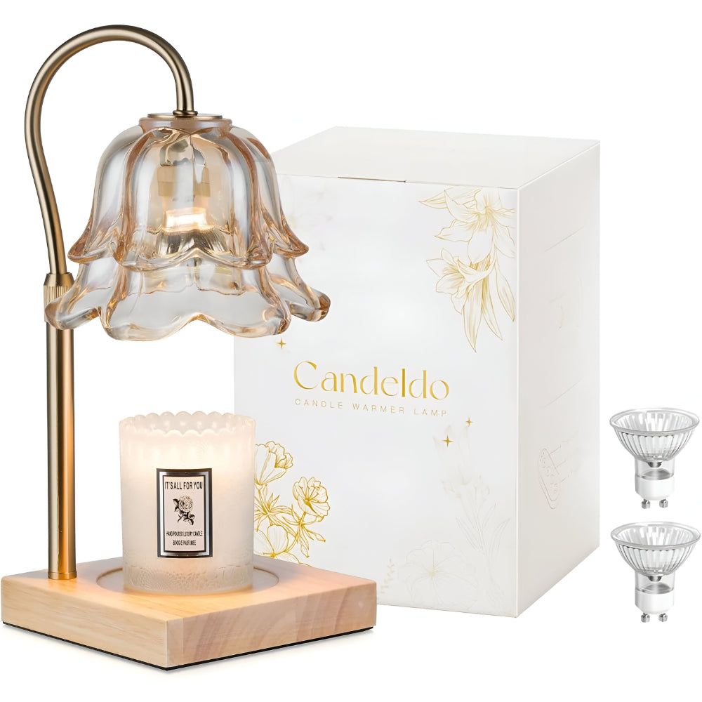 Table lamp of the electric candle warmer type allows for even warming of scented candles without using fire. The device releases aroma gradually, without smoke or soot, supporting clean use indoors. Brightness adjustment and timer function allow you to tailor the operation to daily needs. The design combines wood and glass, creating a coherent table lighting element for the bedroom, living room, or office.