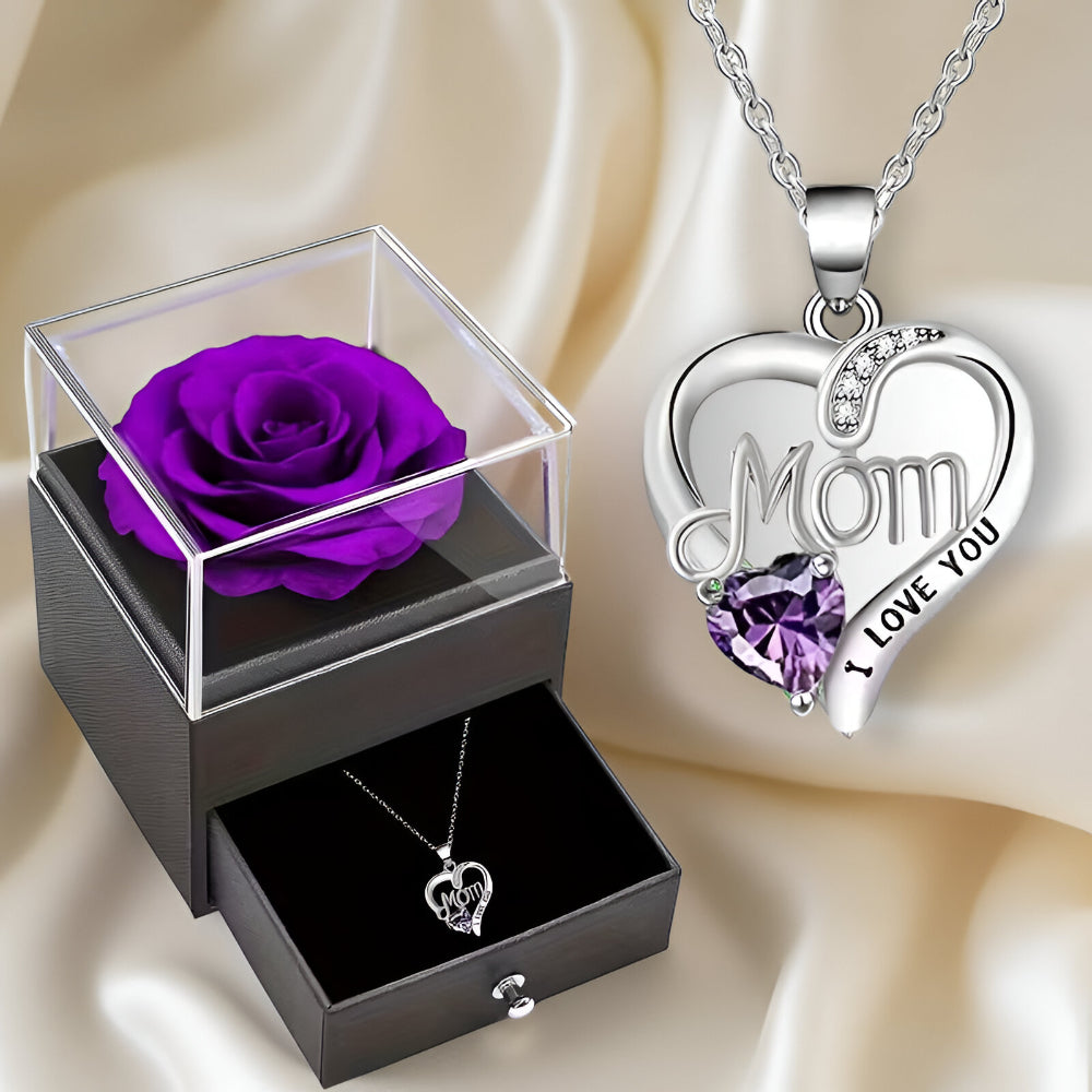 Heart Necklace Gift Set with Eternal Rose in a Box