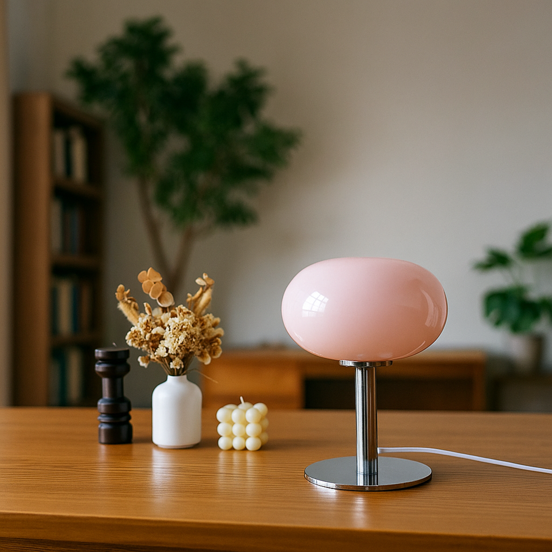 Lampa stołowa w stylu Bauhaus to ponadczasowy element oświetleniowy inspirowany geometryczną prostotą. Szklana forma w połączeniu z metalicznym wykończeniem nadaje jej charakter dekoracyjny i sprawia, że dobrze komponuje się zarówno w nowoczesnych, jak i klasycznych wnętrzach. Kompaktowe wymiary sprawiają, że lampa doskonale pasuje na biurko, stolik nocny lub konsolę, podkreślając aranżację subtelnym światłem LED.