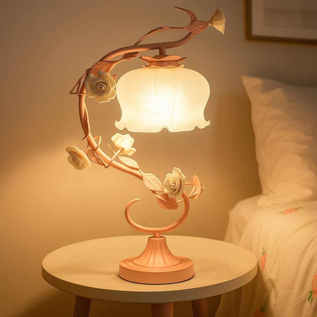 Dekoracyjna Lampa Stołowa W Kształcie Róży | Vintage