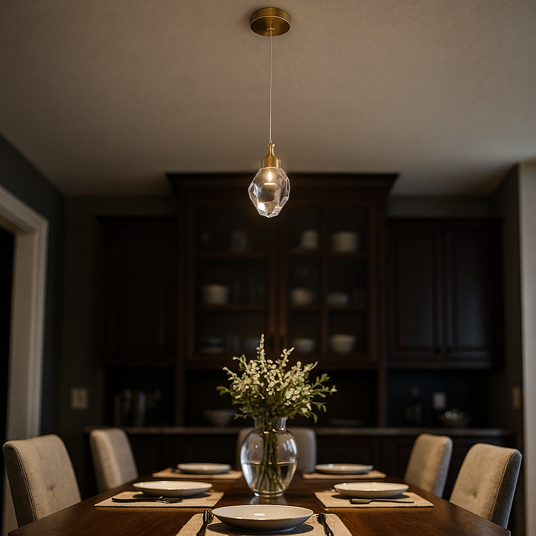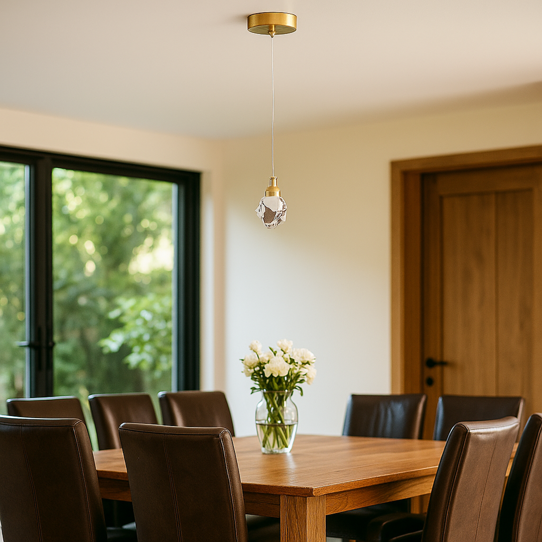 Kryształowo-żelazna lampa wisząca LED to elegancka oprawa świetlna łącząca metaliczną strukturę z transparentnym kryształowym kloszem. Jej kompaktowa forma sprawia, że doskonale nadaje się do sypialni, salonu lub przestrzeni wypoczynkowych. Lampa wyposażona jest w zintegrowane źródło światła LED, które zapewnia równomierne oświetlenie i podkreśla dekoracyjny charakter kryształowych elementów. Smukły przewód i metalowa konstrukcja w kolorze złota lub przezroczystego odcienia nadają jej nowoczesny, ponadczasowy wygląd.