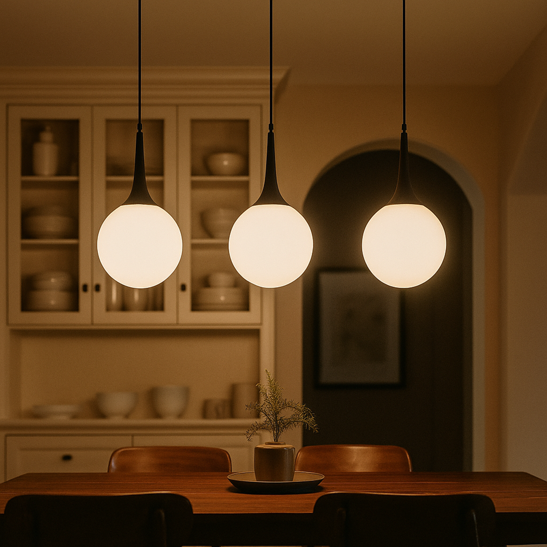 Metalowa lampa sufitowa o kształcie kropli to połączenie nowoczesnego designu i subtelnej estetyki. Szklany klosz o delikatnym połysku nadaje wnętrzu elegancki charakter, a jego przejrzysta forma pozwala światłu miękko rozpraszać się po pomieszczeniu. Połączenie metalu i szkła tworzy wyważoną kompozycję, idealną do przestrzeni utrzymanych w stylu współczesnym, minimalistycznym lub loftowym. Lampa doskonale sprawdzi się nad stołem, w salonie lub w korytarzu.