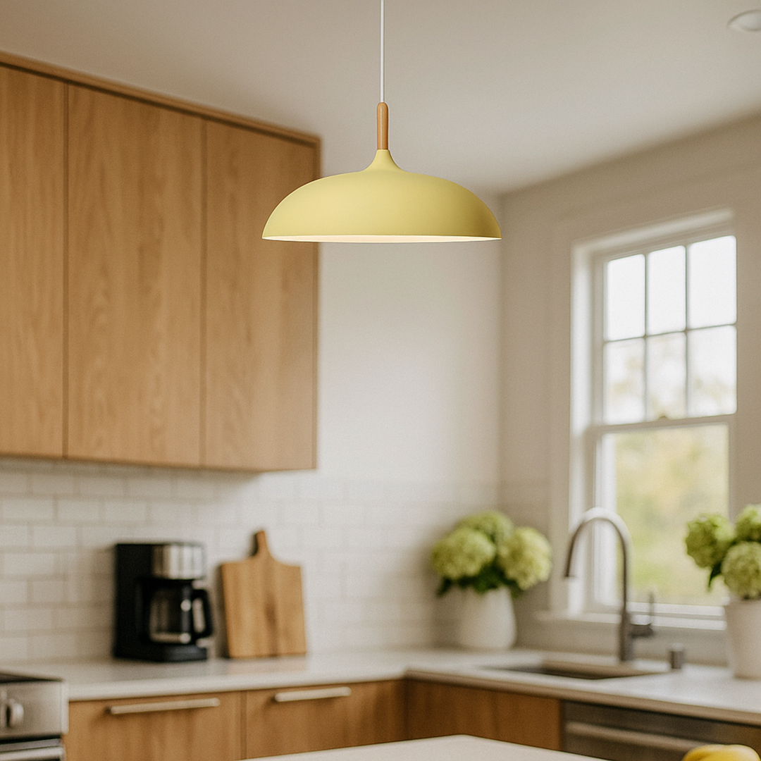 Metalowo-drewniana lampa wisząca w pastelowych kolorach to subtelne połączenie nowoczesnej formy i naturalnych akcentów. Aluminiowy klosz z dekoracyjnym elementem z drewna nadaje jej lekkości i ciepłego charakteru, tworząc harmonijny dodatek do wnętrz urządzonych w stylu skandynawskim, minimalistycznym lub nowoczesnym. Dzięki regulowanemu przewodowi można dostosować wysokość zawieszenia do potrzeb pomieszczenia, a pastelowe odcienie wnoszą do przestrzeni przyjemny, dekoracyjny akcent. Doskonała do kuchni, jadalni, salonu lub przestrzeni komercyjnych.