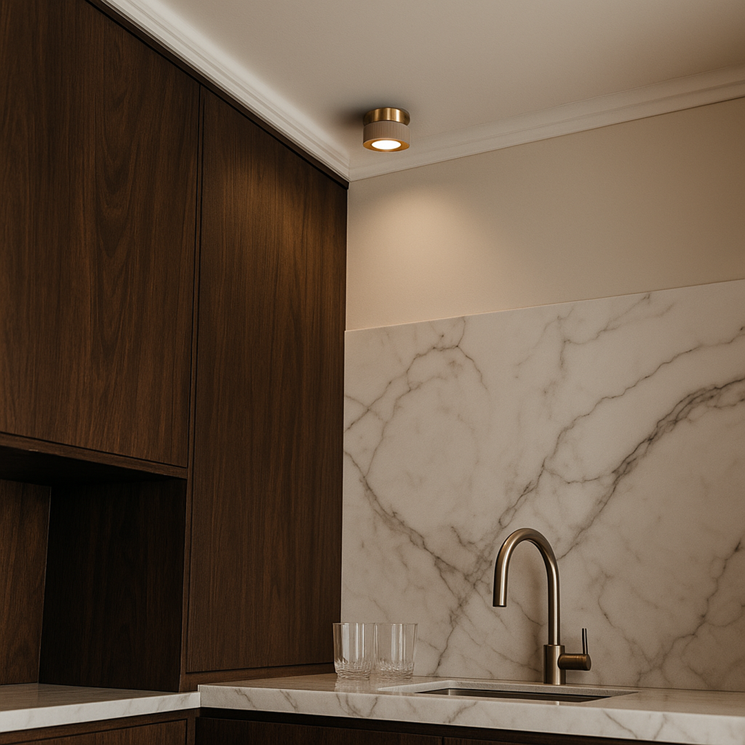 Nowoczesna drewniana brązowa lampa sufitowa to kompaktowe oświetlenie o minimalistycznej formie. Wykonana z materiału o wyglądzie naturalnego drewna, stanowi subtelny akcent w aranżacji wnętrza. Jej geometryczny kształt i ciepła kolorystyka sprawiają, że doskonale komponuje się ze stylem skandynawskim, nowoczesnym lub japandi. Lampa wyposażona jest w źródło światła LED, idealne do oświetlenia mniejszych przestrzeni, takich jak korytarz, przedpokój czy garderoba.