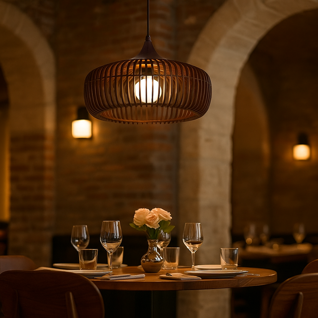 Nowoczesna drewniana lampa wisząca to połączenie naturalnej elegancji z prostotą współczesnego wzornictwa. Ażurowa konstrukcja z drewnianych listew subtelnie filtruje światło, tworząc delikatne wzory i przytulny nastrój w pomieszczeniu. Model doskonale wpisuje się w aranżacje inspirowane naturą, takie jak styl japandi, skandynawski czy minimalistyczny. Dzięki regulowanemu przewodowi można dopasować wysokość zawieszenia do różnych przestrzeni – od jadalni po salon.