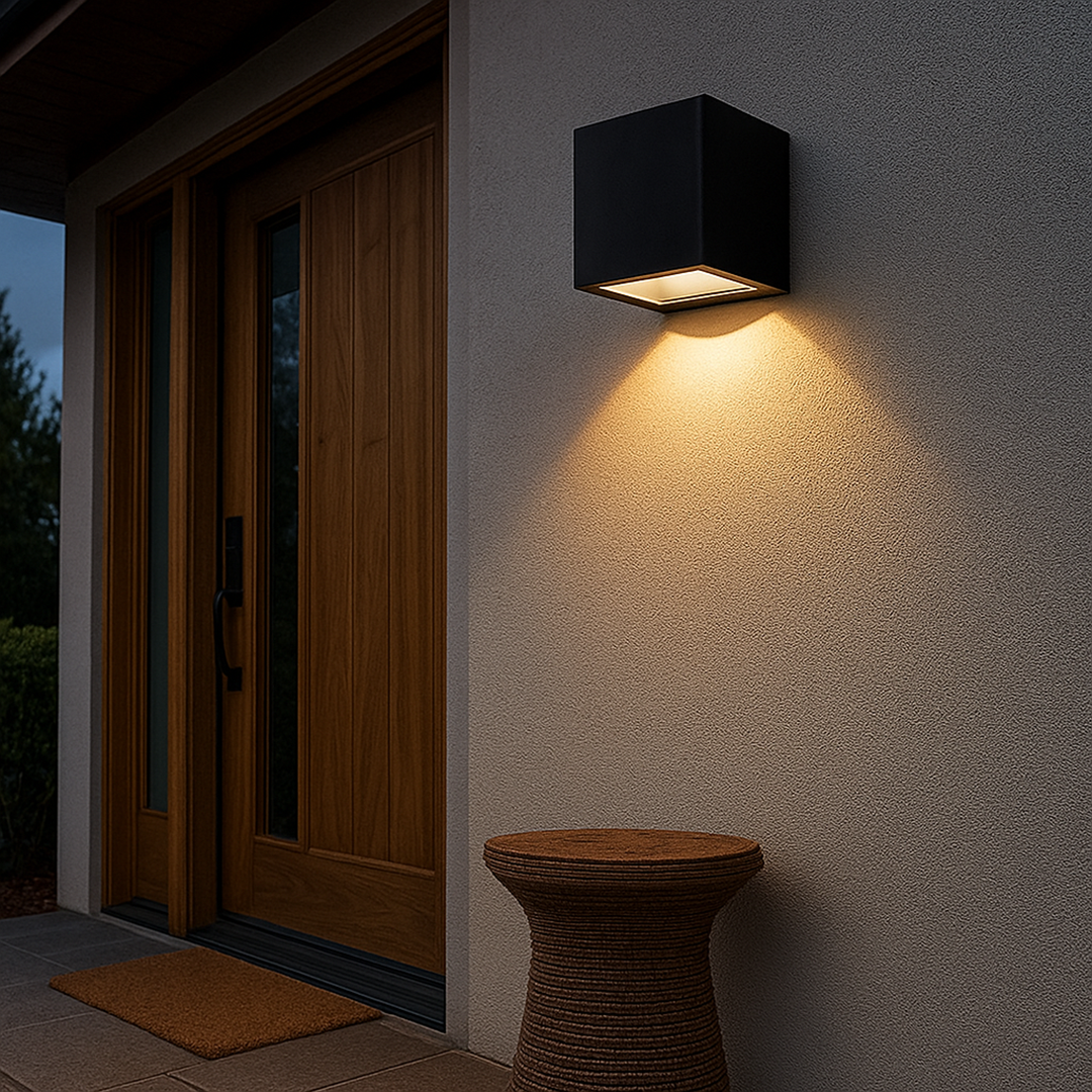 Nowoczesna kostkowa lampa ścienna LED to kompaktowe oświetlenie przeznaczone do użytku zewnętrznego i wewnętrznego. Jej prosta forma w kształcie sześcianu wykonana z tworzywa ABS podkreśla minimalistyczny charakter, a delikatne światło LED o ciepłej barwie nadaje przestrzeni przyjemny wygląd. Dzięki wbudowanemu akumulatorowi litowemu zasilanemu energią słoneczną, lampa działa w sposób bezprzewodowy, co ułatwia jej montaż w różnych miejscach — na elewacjach, tarasach lub przy wejściach.