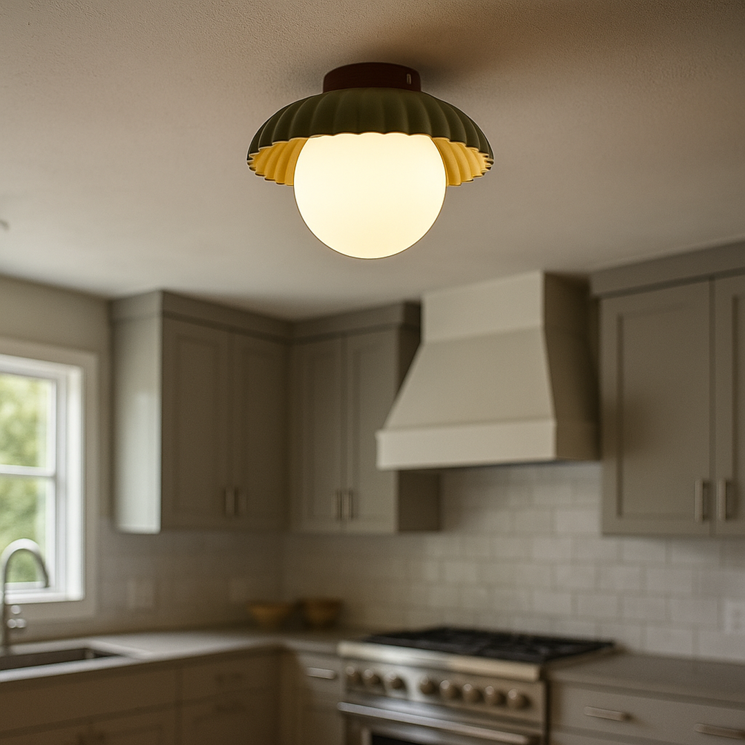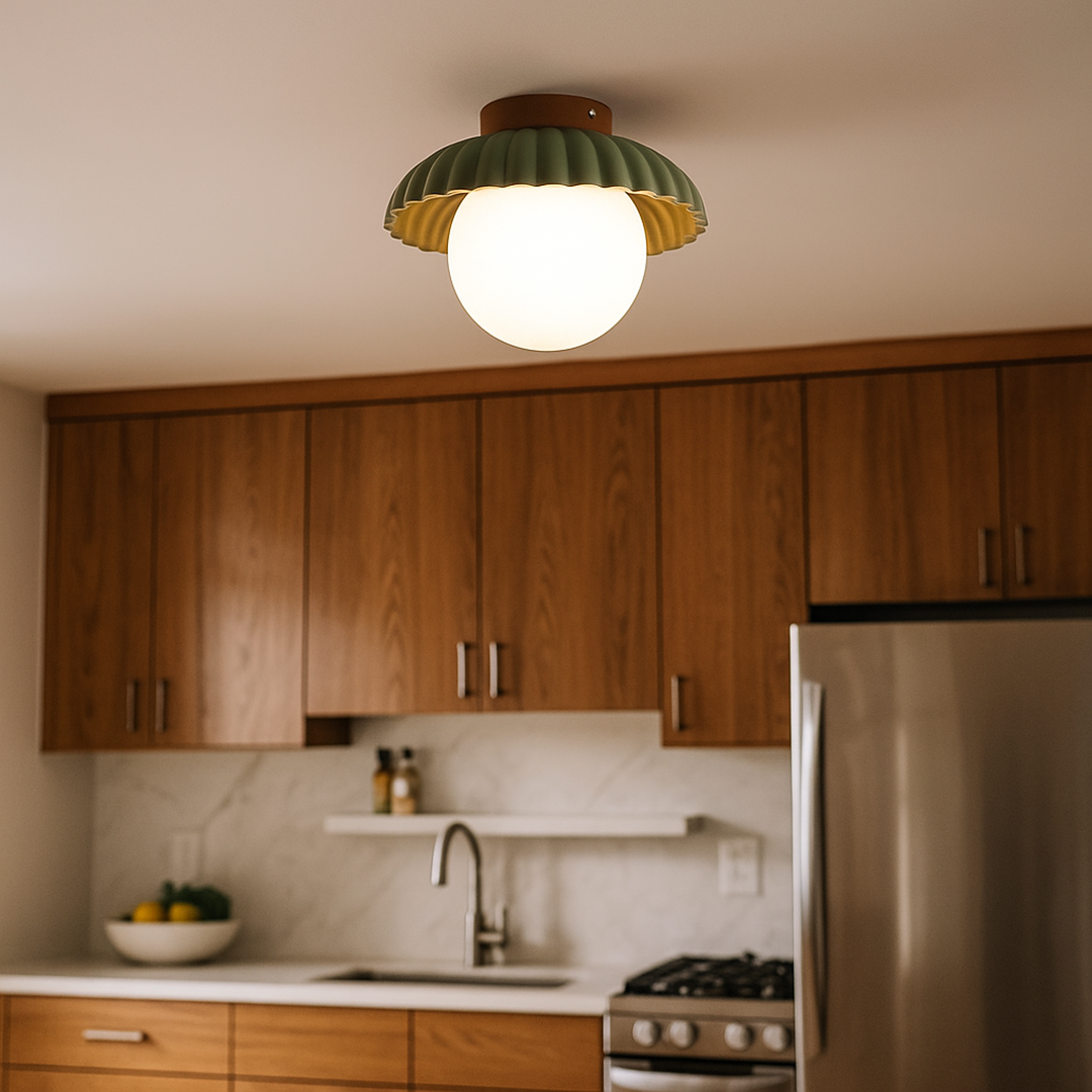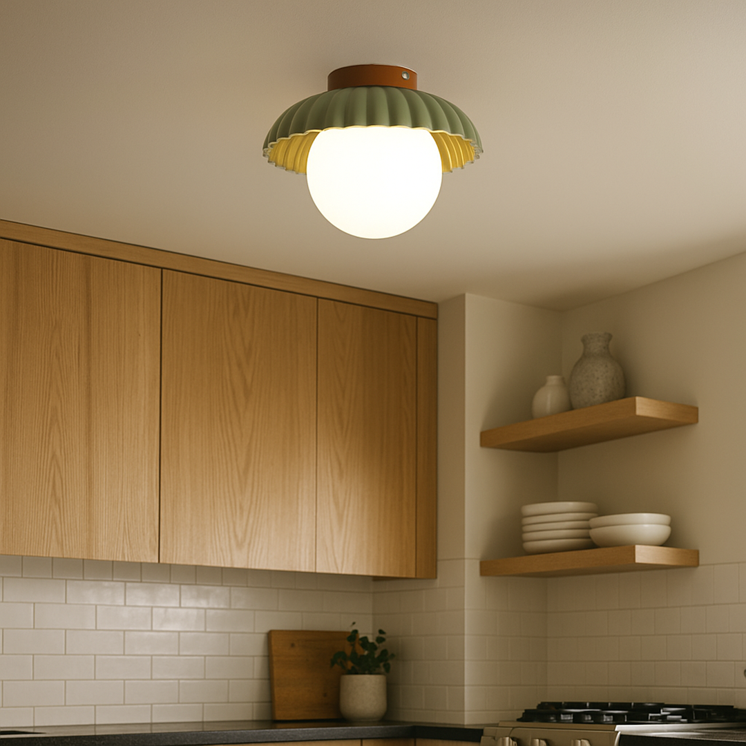Nowoczesna lampa sufitowa to model o prostej, ponadczasowej formie, który doskonale sprawdza się w przestrzeniach dziennych. Połączenie szkła i metalu nadaje jej wyważony wygląd, łączący funkcjonalność z estetyką. Szklany klosz delikatnie rozprasza światło, tworząc spójną iluminację w pomieszczeniu. Dzięki kompaktowym wymiarom lampa dobrze prezentuje się w salonie, jadalni lub korytarzu, uzupełniając wystrój o subtelny akcent oświetleniowy.