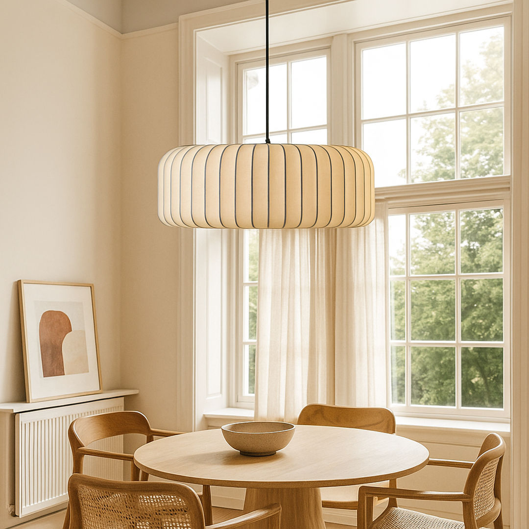 Nowoczesna Lampa Wisząca Z Tkaninowym Kloszem | Jadalnia