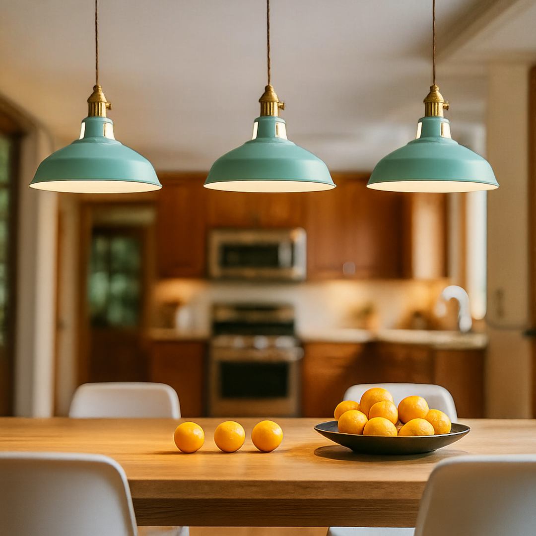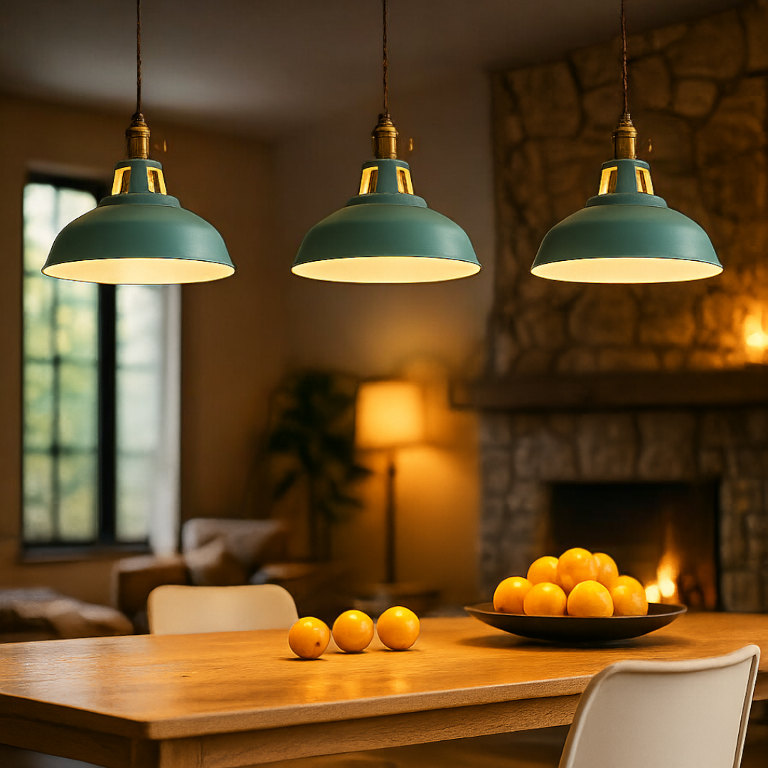 Przemysłowa lampa wisząca to stylowe oświetlenie inspirowane klasycznym wzornictwem przemysłowym. Jej metalowy klosz o kształcie stodoły w połączeniu z kolorowym wykończeniem wprowadza do wnętrza energiczny akcent i wyrazisty charakter. Lampa świetnie sprawdzi się nad kuchenną wyspą, stołem w jadalni lub w przestrzeniach roboczych, nadając im surowy, a zarazem dekoracyjny wygląd. Regulowana długość przewodu pozwala dopasować wysokość montażu do indywidualnych potrzeb oraz różnej wysokości pomieszczeń.