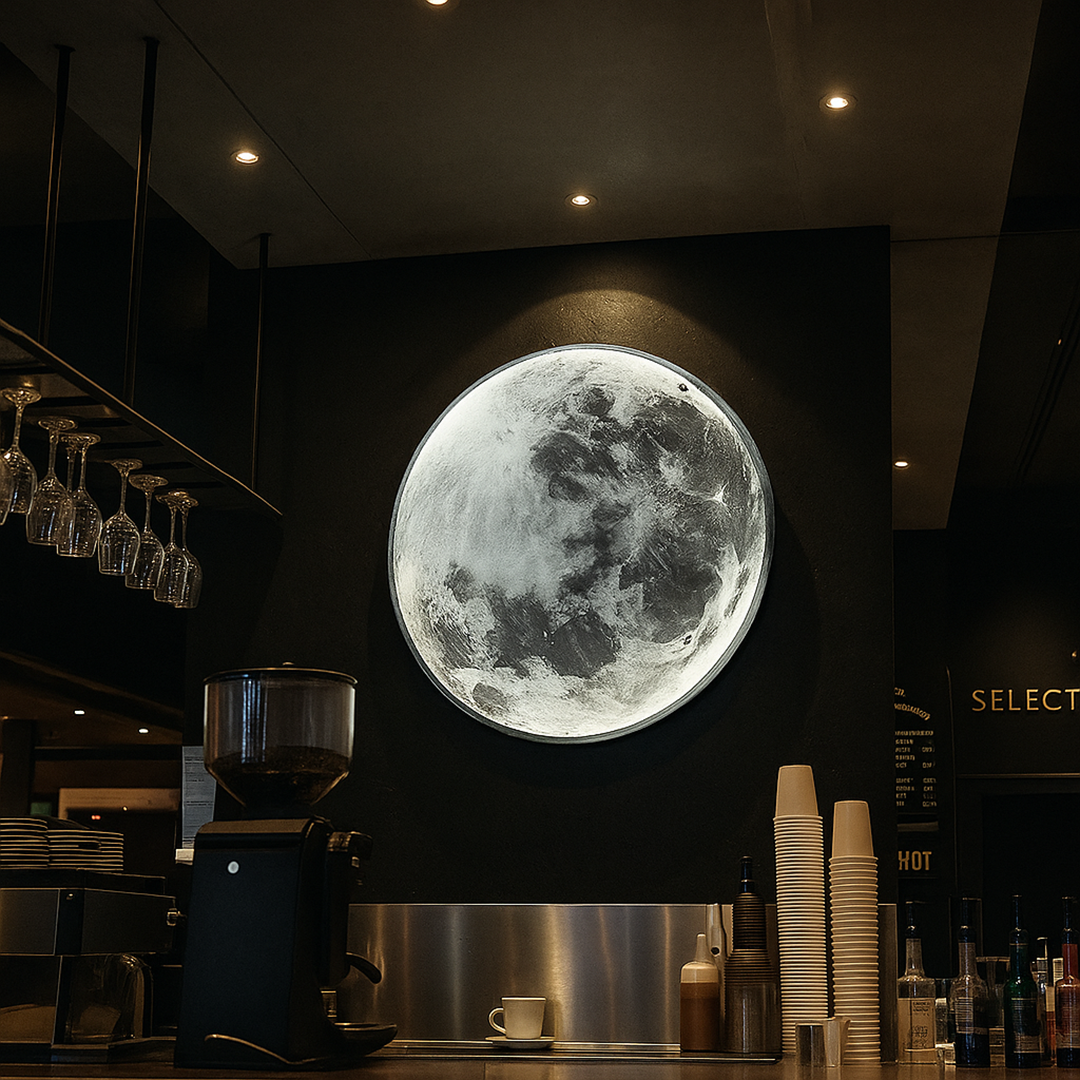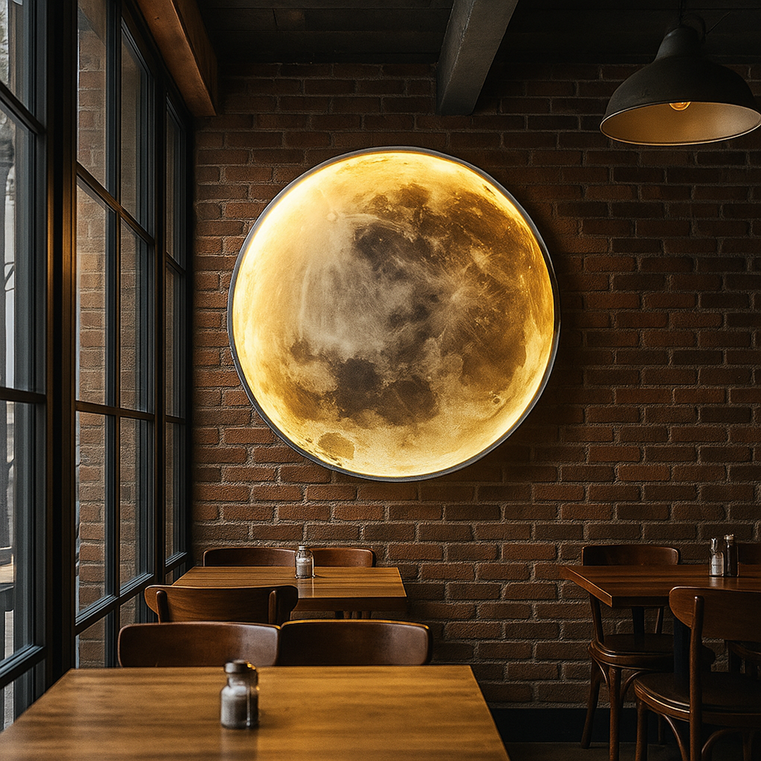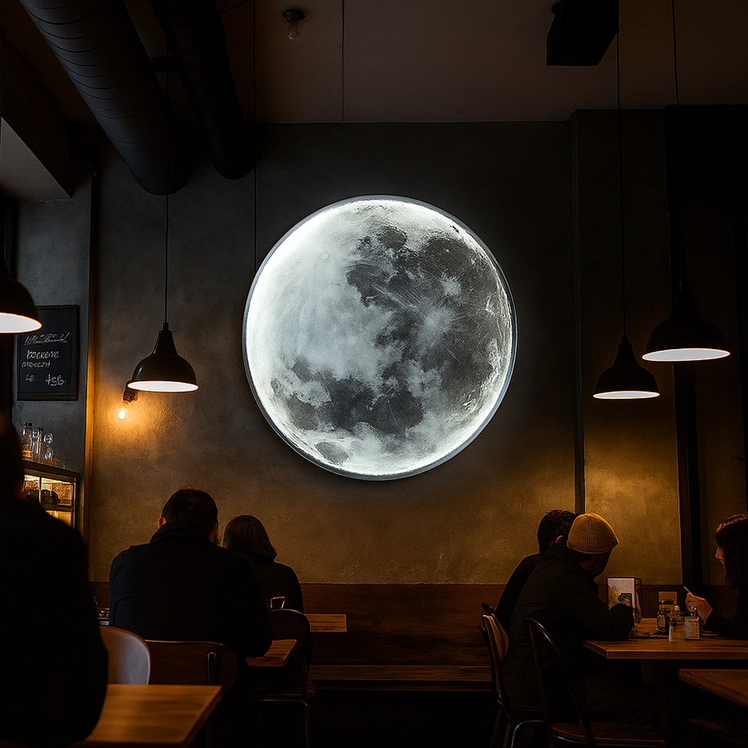 Dodaj realistyczną lampę ścienną w kształcie pełni księżyca do swojego wnętrza i podkreśl dekoracyjny charakter aranżacji.