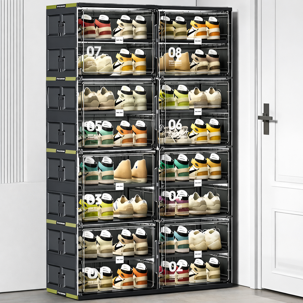 Gdy buty stoją w wielu miejscach, łatwo stracić porządek oraz czas. regał obuwie działa jako organizer buty, wspiera przechowywanie obuwia w układzie pionowym. front przezroczysty pomaga sprawdzić zawartość bez otwierania wielu pudełek. Modułowa forma ułatwia dopasowanie układu w przedpokoju, garderobie, sypialni, szafie.