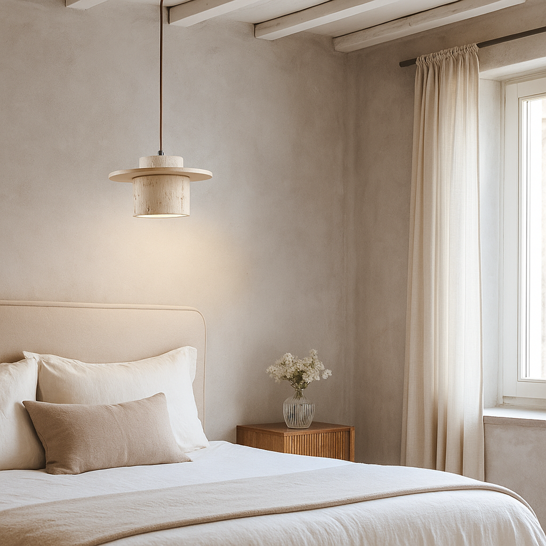 Retro lampa wisząca z matowego szkła to połączenie klasycznej elegancji i naturalnych materiałów. Jej subtelny design inspirowany stylem vintage wprowadza do wnętrza ciepły, nastrojowy klimat. Połączenie trawertynu i drewna podkreśla ponadczasowy charakter lampy, tworząc efektowny akcent dekoracyjny nad stołem, w salonie lub sypialni. Matowe szkło delikatnie rozprasza światło, nadając pomieszczeniu przyjemną atmosferę.