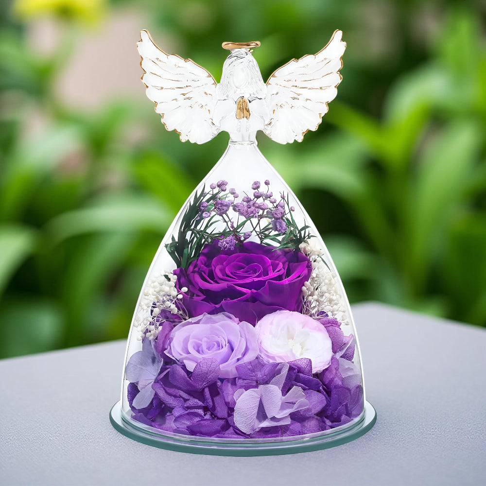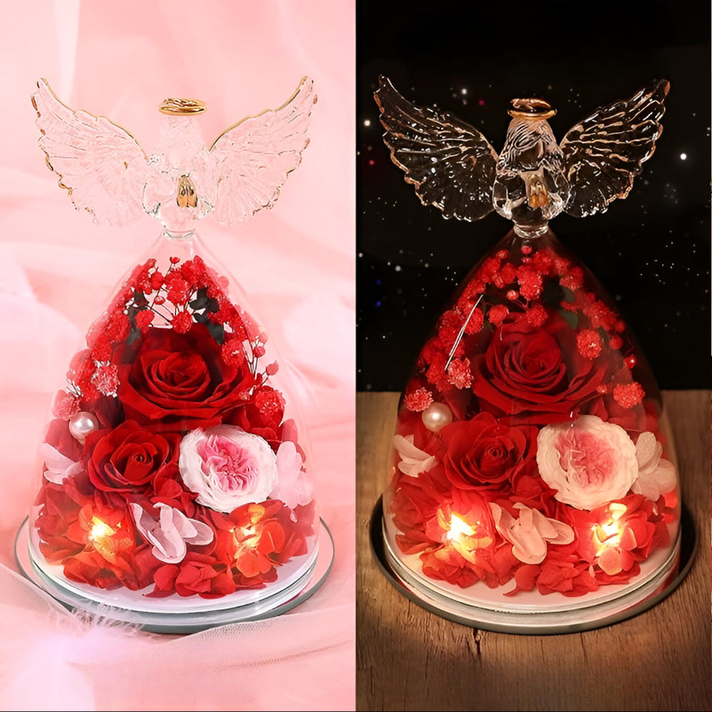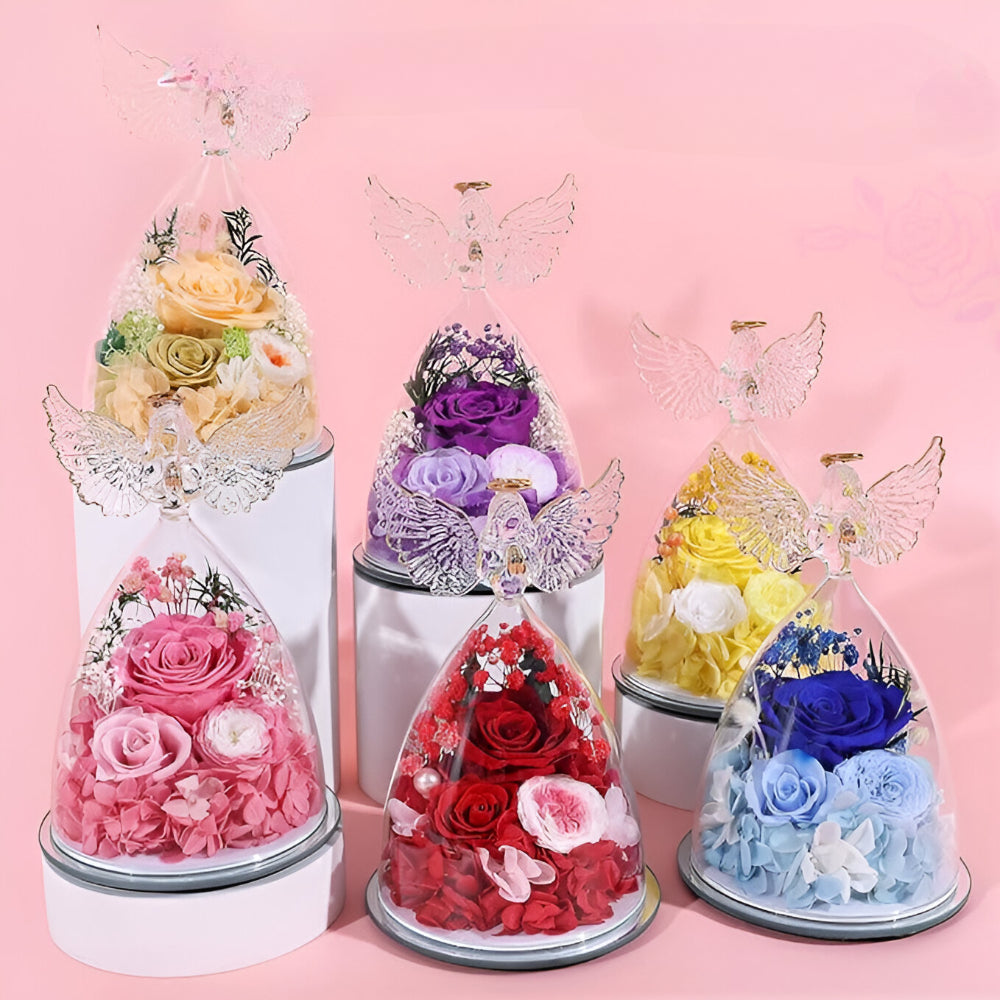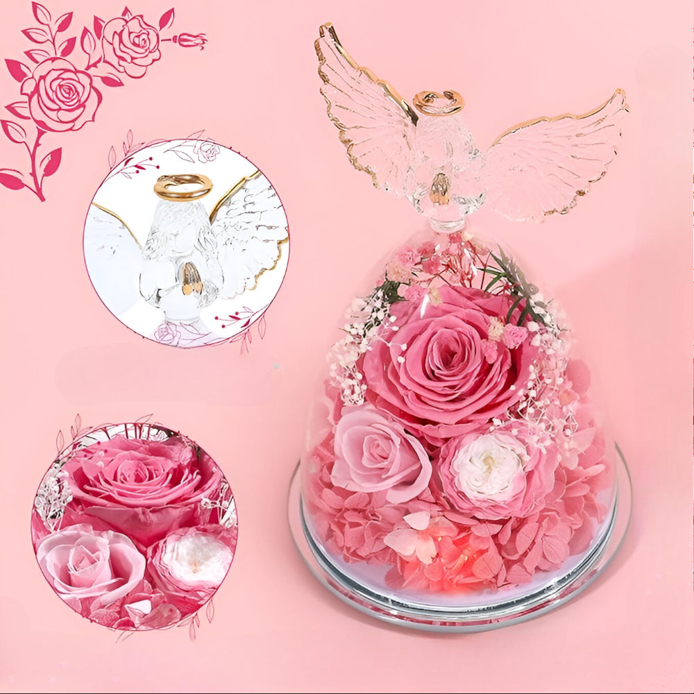 Ponadczasowy Symbol Uczuć Róża Wieczna Szklana Figurka Anioła Dekoracja Prezentowa