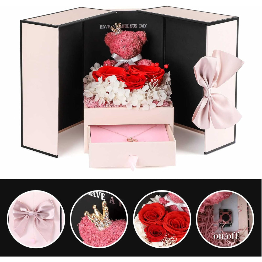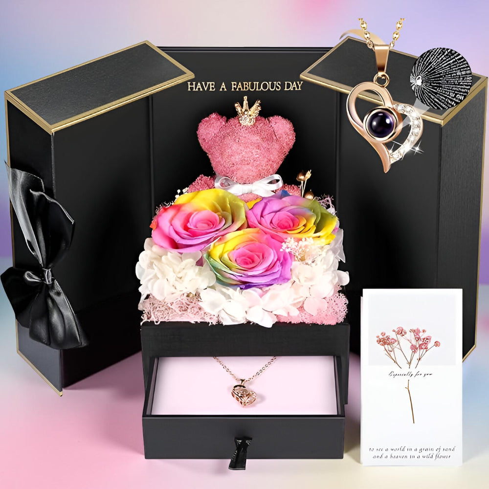 Róże Stabilizowane W Pudełku Serce Z Naszyjnikiem Prezentowym