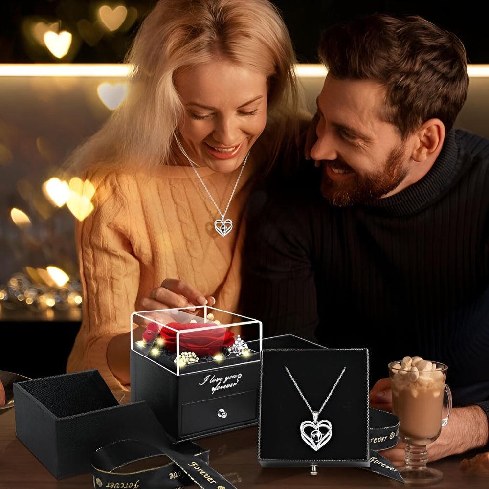 Walentynkowy Prezent Róża Stabilizowana LED Naszyjnik Serce